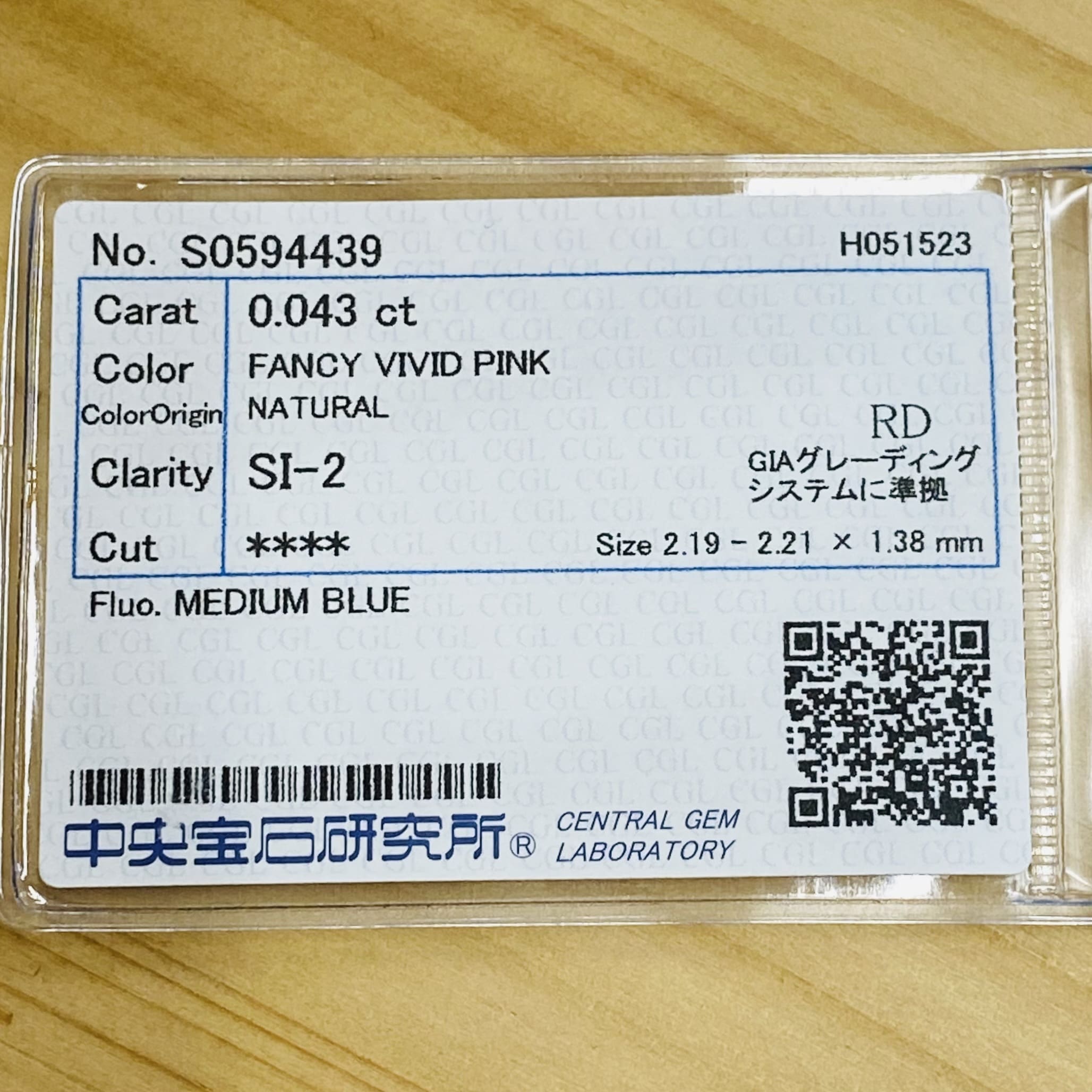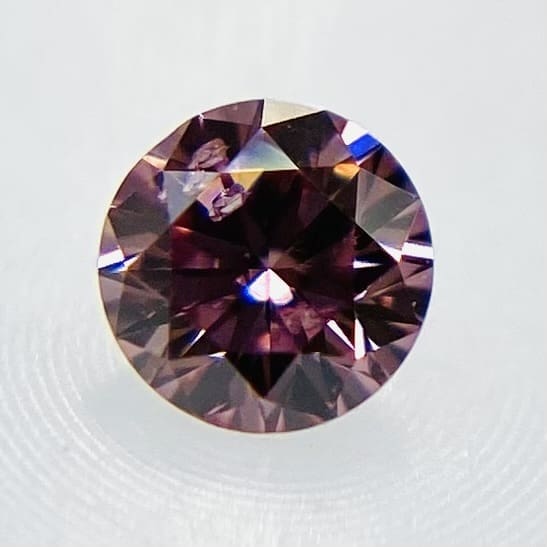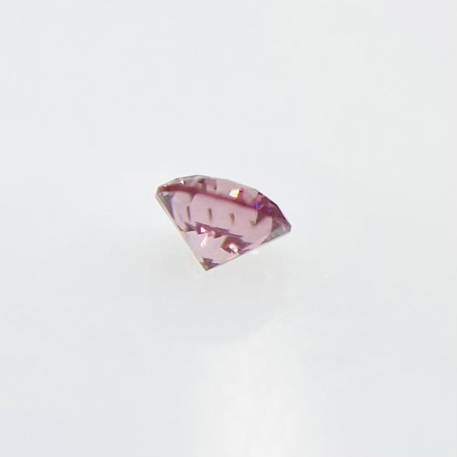 パッと見て、とても明るい彩度のビビットピンクです!ビビットだと濃すぎて暗い事もありますが、こちらは明るくキラキラした理想的なビビットカラーであると思います。最高峰のVIVIDランクに相応しい大変彩りの良いストレートピンクです。サイズは小さいですが目に焼き付くような強いカラーを持っています。美しい揺らめきがあり観る人を魅了してしまう、ピンクダイヤモンド。その理由がこの石を観ていると分かります。本当に美しいです。是非手元でこの美しさを実感して頂きたいです。人気の高いラウンドブリリアントカットです。メイクもよく、プロポーションが素晴らしいです。SIクラスで、小さな白傷がありますがボディーカラーが濃い為、美しさを損なう事はありません。