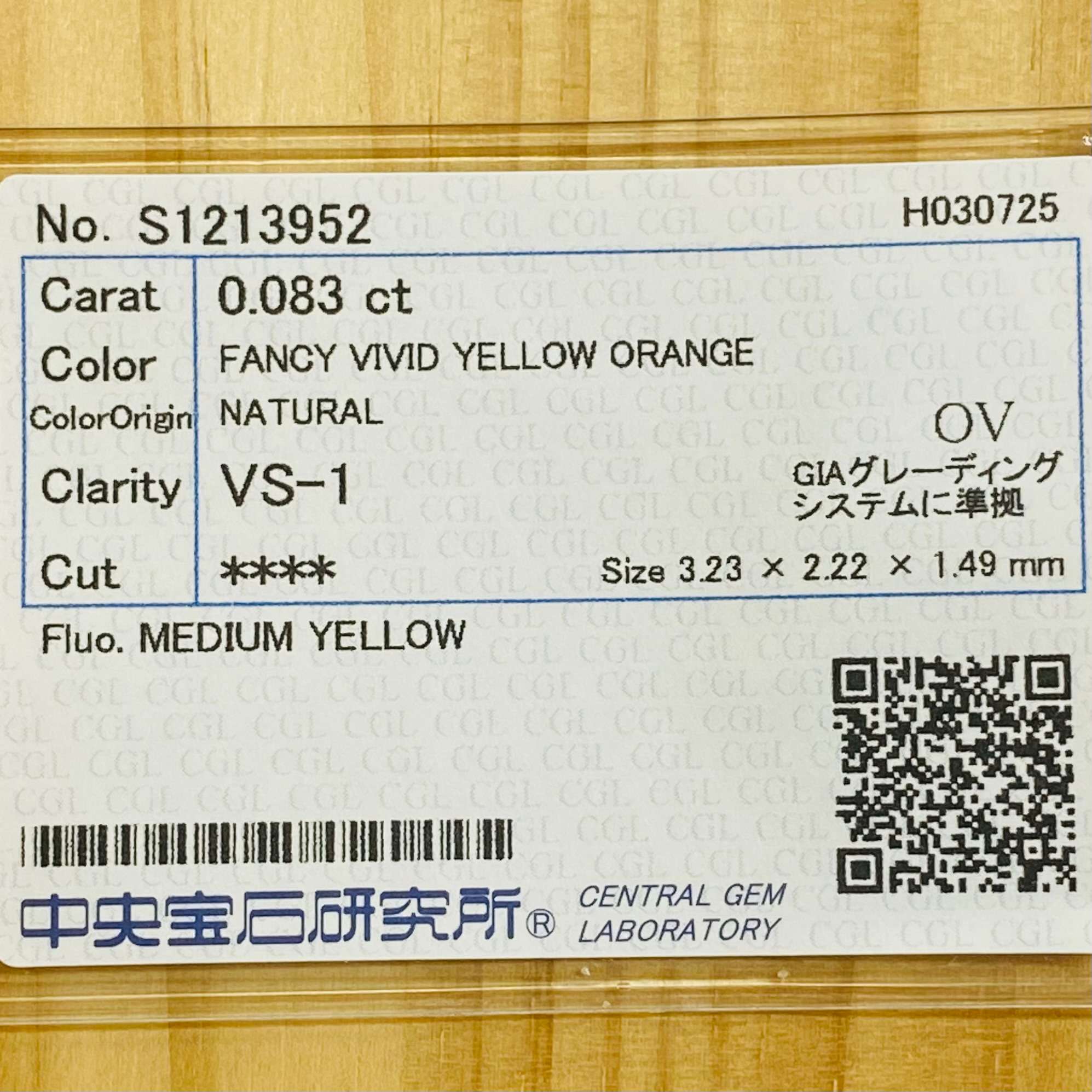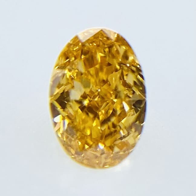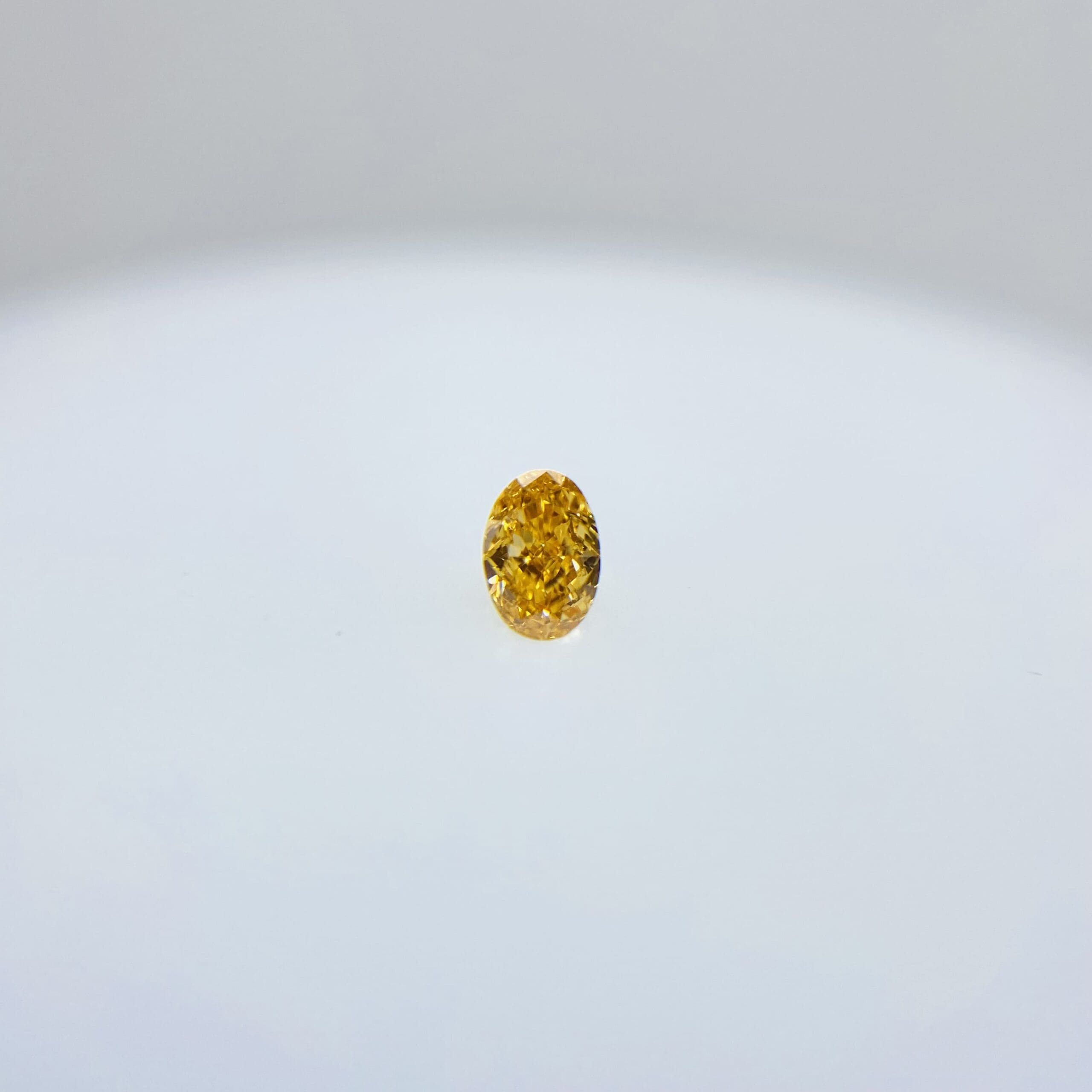とても明るい、スッキリしたオレンジカラーです。瑞々しいキラキラが眩しい程です。VIVIDのタイプだと濃すぎて茶色みが強いものが多いですがこちらはしっかり濃厚オレンジ感じて頂けるともいます。同じ色味でもかなりの色の違いを感じるオレンジ色一つ一つに個性があります。ビタミンカラーでもあり元気をもらえる石であることは間違いないです!カットはバランスの良い、オーバルカットです。VSクラスで、テーブルクリーンで透明感があり、とても綺麗です。MEDIUM YELLOW の蛍光性がこの石の美しさを更に引き立てていると感じます。