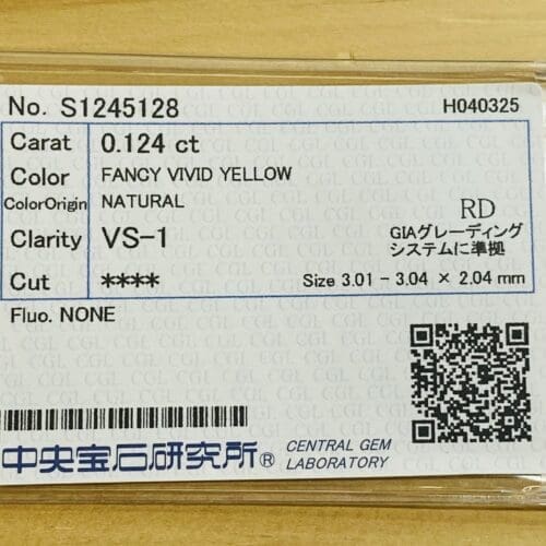明るく発色の良いビビットカラーです。色ムラもなく、どこからみても均一な色味です。ビタミンカラーでもあり元気をもらえる石であることは間違いないです!カットは、人気の高いラウンドブリリアントカットです。VSグレードでメイクも良くとてもキラキラしています。透明度とシンチレーションの最高のコラボレーション!