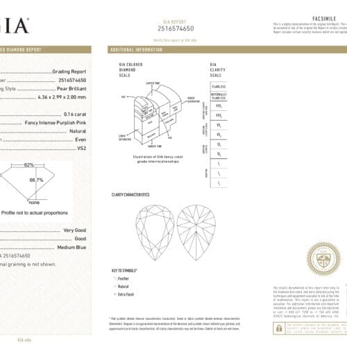 GIAガードルNo.2516574650とても美しいストロベリーカラーです。INTENSEと出ていますがVIVIDカラーに近いと感じます。色々なピンクダイヤモンドのカラーがありますがこの色のタイプはなかなかありません。お写真ではこの色味を表現することは難しくて申し訳ございません。是非、直接ご覧頂きたいピンクダイヤモンドです。カットはバランスの良い、ペアシェイプです。VSクラスで、目立つ内包物もなく大変透明感と照りを備えています。