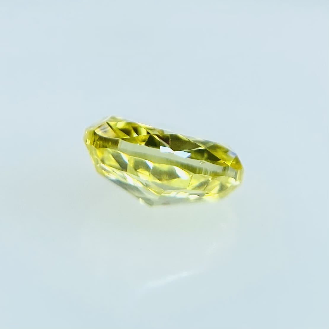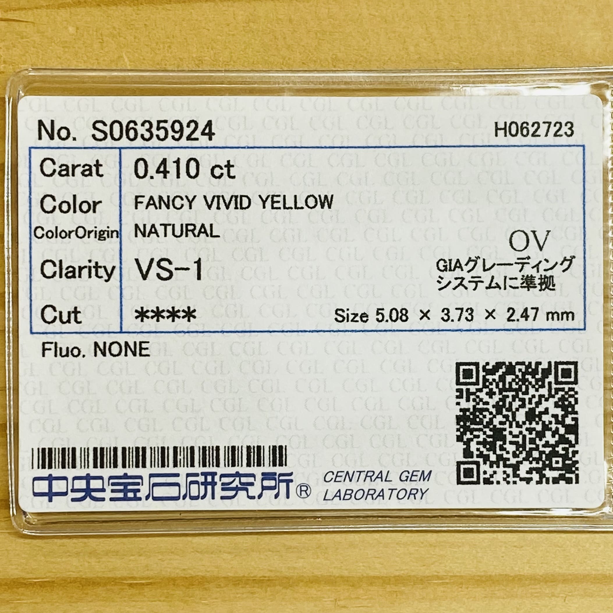カナリアイエローのような神々しいカラー!透明感ある輝きがとても美しいです!彩度、明度ともに最高レベルのイエローダイヤモンドです!色乗りとテリが良く、メイクも素晴らしいです。石の奥から上品さも感じられるダイヤモンドです。ビタミンカラーでもあり元気をもらえる石であることは間違いないです!カットは、少しぽってり感のあるオーバルカットです。VSクラスで、テーブルクリーンのとても綺麗な石です!