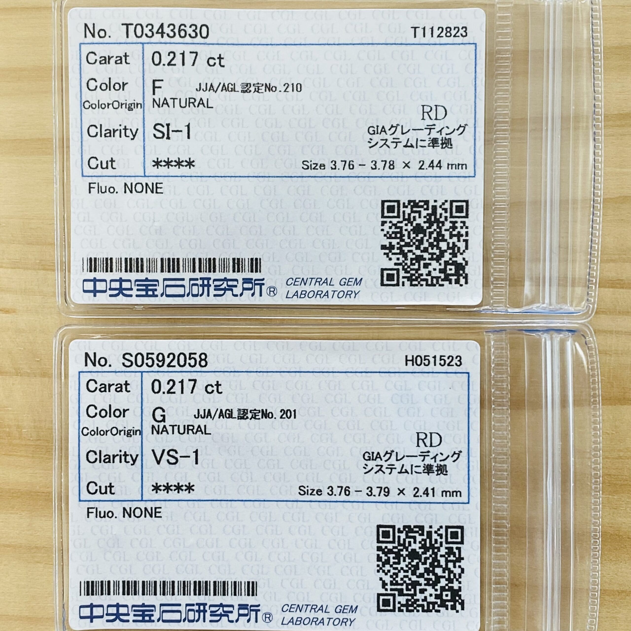 0.217 cts G VS10.217 cts F SI1G/Fカラー、VS1/SI1クラスと申し分ないグレードが出ております。見た目はラウンドですが、ルーペなどで拡大していただくと反射で星型が見えてきます!しかもペアで揃いました!とても神秘的です!カットも細かく施されており、輝きが絶品です。テリと煌めきも素晴らしく、キラキラが止まりません!ぱっと見はラウンドなのに、星が隠れているなんて自分だけの幸せな秘密のようで、心がときめいてしまいます!ラウンドブリリアントカットに飽きてしまった方や人と違ったものをお持ちになりたい方にもお勧めです。VVSとVSクラスで、大変美しいダイヤモンドです。他には絶対にない珍しいカットですので、気になった方は是非!お買い求めください!!!