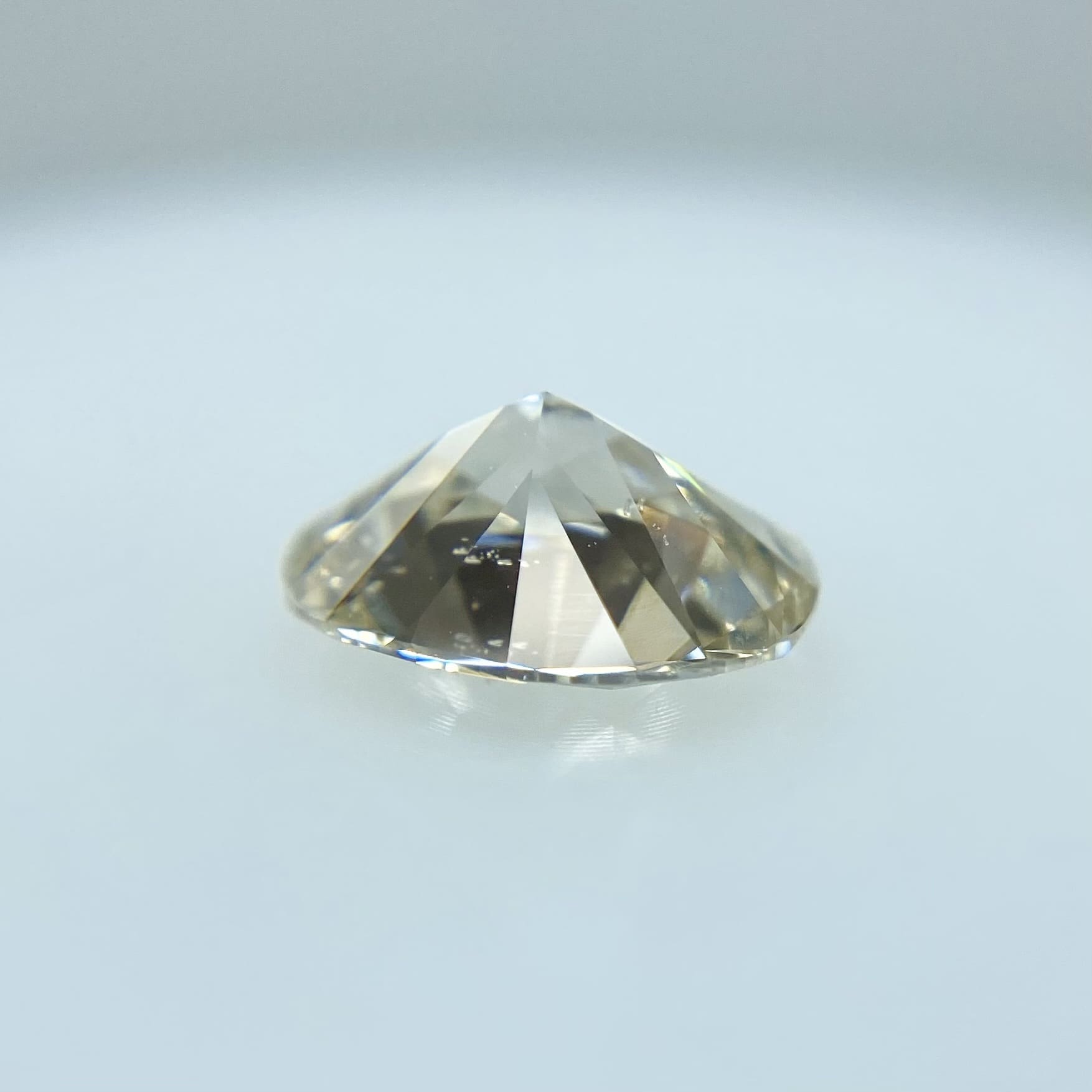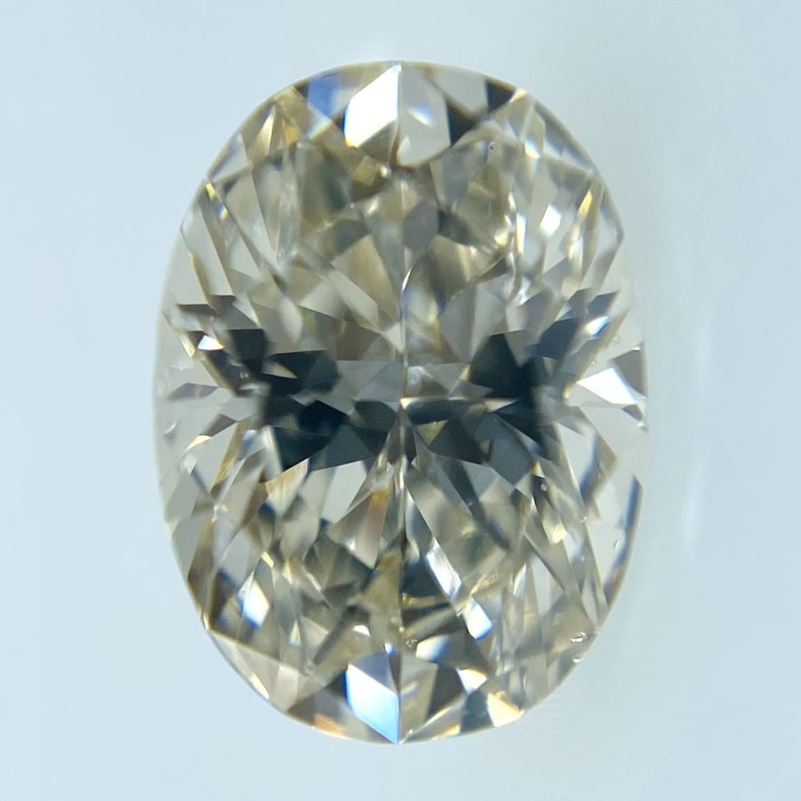 ほんのり優しいブラウンを感じる色味です。うっすらピンクにも見える印象です。照りが良くキラキラと眩しいです。VERY LIGHT BROWNとても肌なじみの良い、柔らかいブラウンです。シェイプは、バランスの良いオーバルカットです。SIクラスで、小さなフェザーありますが美しさを損なうものではありません。