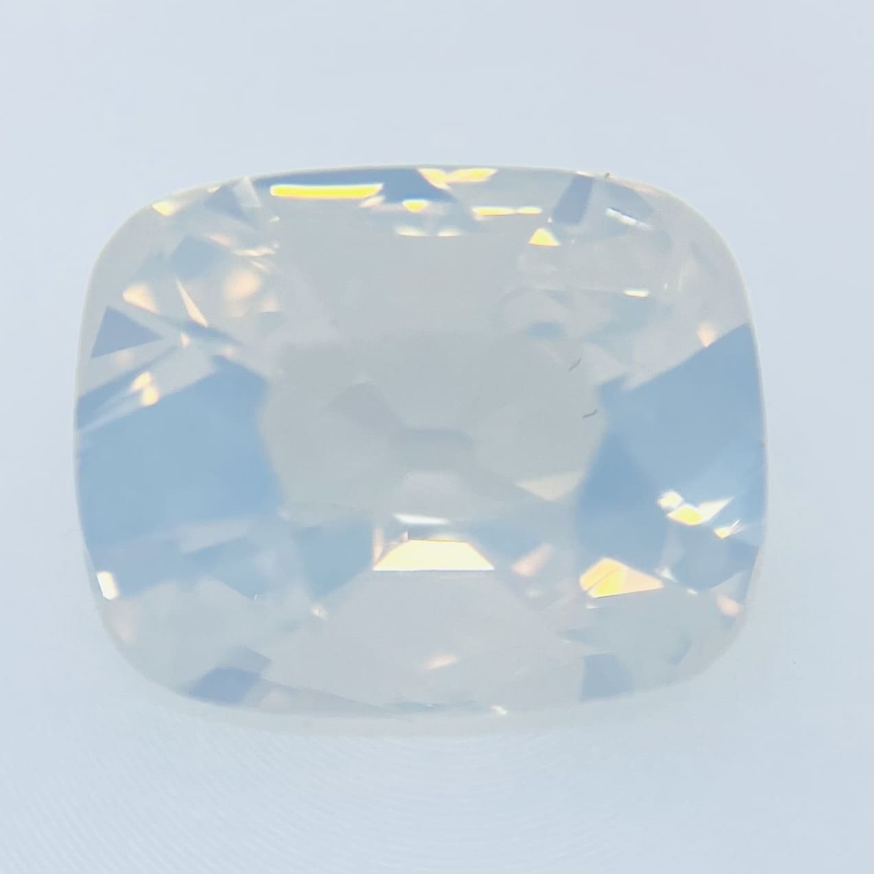 GIAガードルNO.7481681744ホワイトダイヤモンドの、この乳白色が何とも言えない神秘さを感じさせます。ホワイトダイヤモンドは人気が高いので気になった方は是非お早めに!!魅惑的なカラーが印象的です。オパーレッセンスを感じさせるようなホワイトカラーです。透明さと白さが丁度バランスよくマッチングした最高峰のホワイトカラーです。オールドマインカットなのでガードルから上にしっかり高さがあるので揺らめきが大変美しいです。ホワイトダイヤモンドでこのオールドマインカットも大変珍しいです。目立つ内包物はありません。