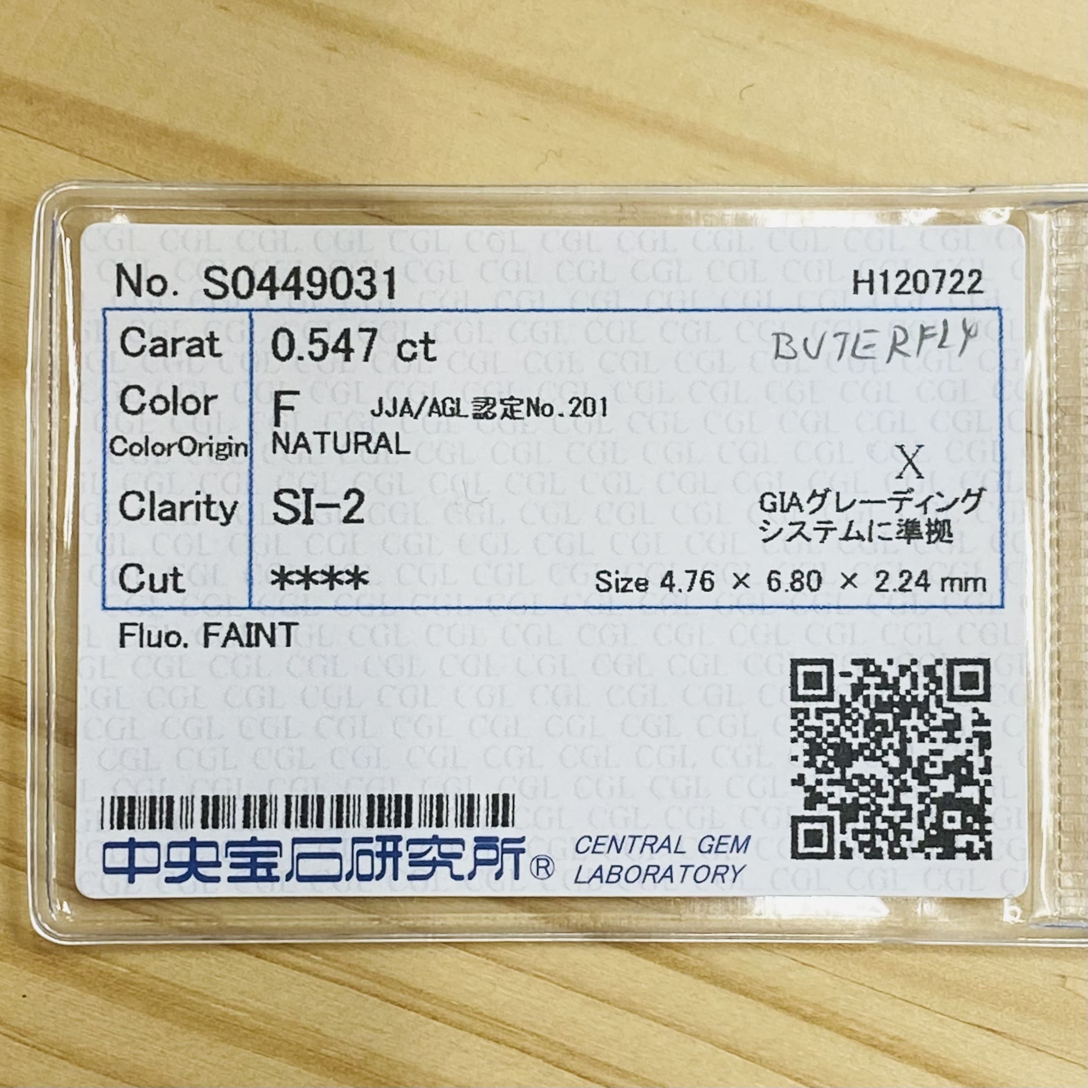 なんとあの美しい蝶々形のダイヤモンドです。とても、細かくカットしてあるので、躍動感があります。今にも空に飛び立ちそうです。神秘的で、テリがすごく良いです。Fカラー、SI2グレードでとても素晴らしいです。透明感があり、ジュエリーにしたら素敵なんだろうなぁって思います。他には絶対にない珍しいカットですので、気になった方は是非!お買い求めください!!!