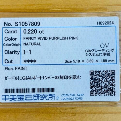 GIAガードルNO.6234347672一般的にVIVIDは濃すぎて暗くなりがちですがこちらのビビットピンクはパープルが入っていることもあり明るく発色の良いVIVIDカラーです。同じ色味でもかなりの色の違いを感じるピンクダイヤモンド一つ一つにその素晴らしい個性があります。是非この素晴らしい色をお手元でご覧頂けたら幸いです。カットは少し縦長のオーバルカットです。成長線や表面に達するフェザー、小さいキャビティがあります。実際加工等には問題ない程度と思われます。