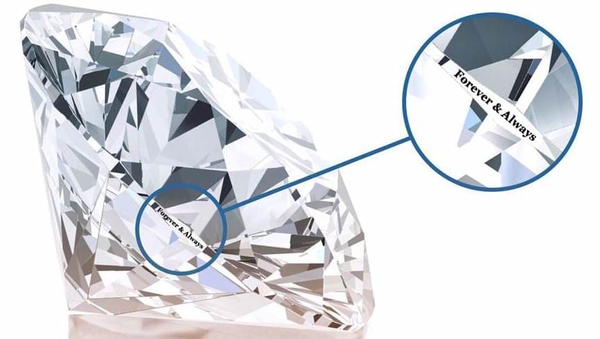 R T Diamondsでは、当店でご購入いただいたルースダイヤモンドに限り、ガードル(ダイヤモンドの外周部分)にお好きな文字や記号をレーザーで刻印するサービスを提供しております。