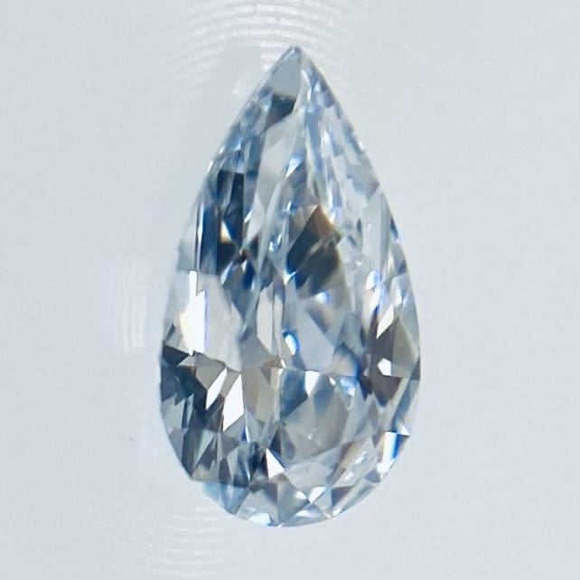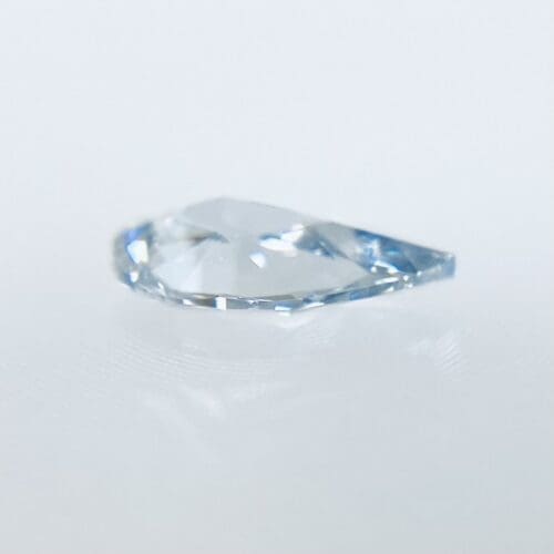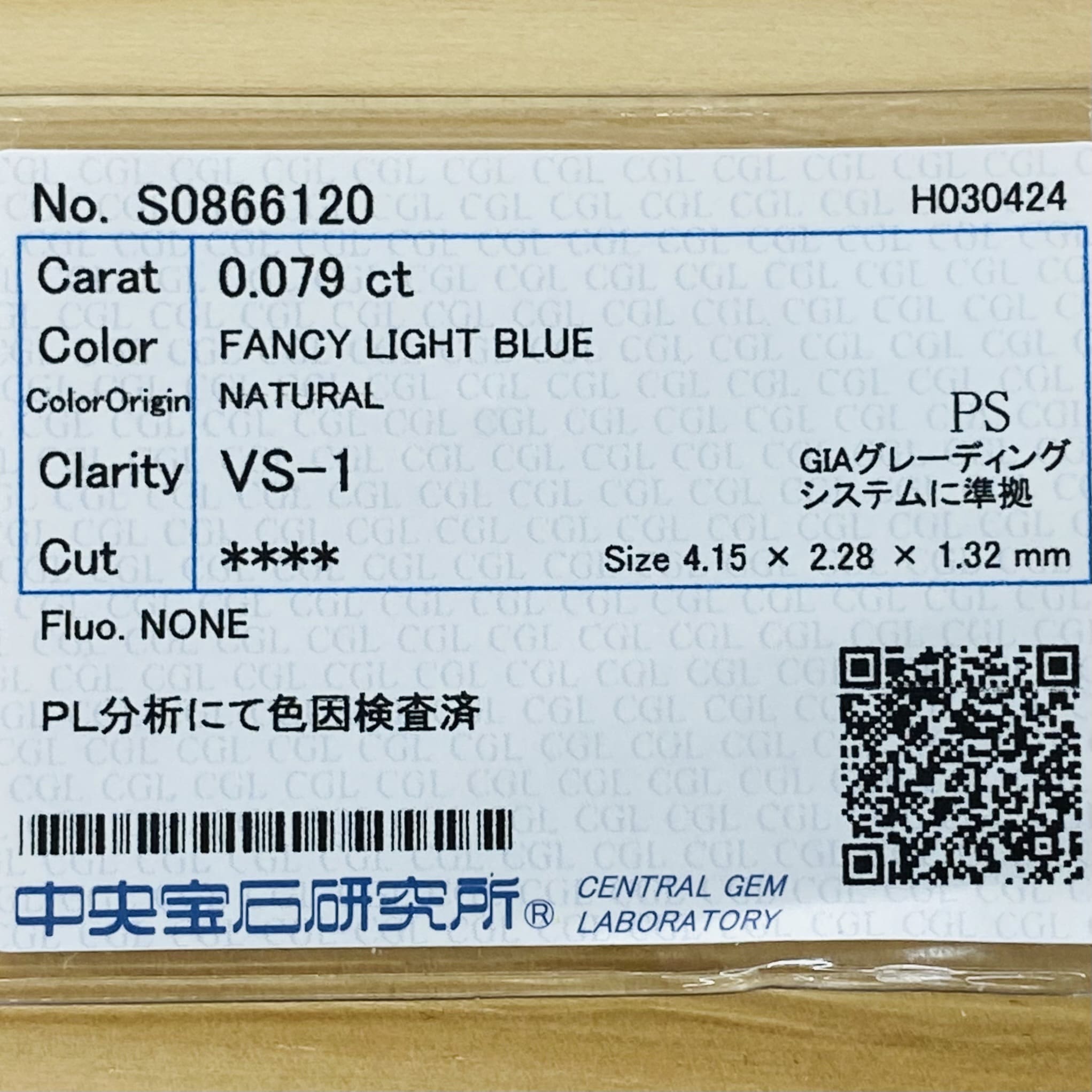 空や海などを思い浮かべ、透明感や開放感を感じさせます。明るく澄みきった、クリアなストレートBLUEです。カットはペアシェイプです。VSグレードでテーブルクリーンな綺麗な石です。中央宝石にてPL分析にて色因検査済とあります。一般的にタイプ2型のダイヤモンドであることを示唆しています。