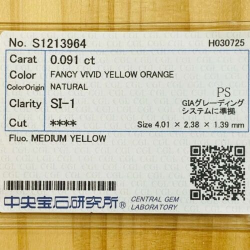 | Fancy Color | Fancy Vivid Yellow Orange |
