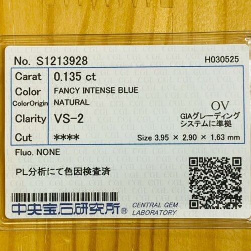 大変、希少で人気の高い、天然ブルーダイヤモンドのご紹介です。美しいINTENSEで色に深みがあり、またとないブルーダイヤモンドです。これぞストレートブルーと言うのにふさわしいダイヤです。そして、ブルーには欠かせない深みも備えており他の色とは比較できるものは、ないと確信しております。カットはバランスの良いオーバルカットです。VSクラスで目立つ内包物はなく、透明感がある素晴らしいブルーダイヤです。PL分析にて色因検査済とCGLのソーティングがあります。これは、確定ではないですがタイプⅡの可能性を示唆しております。そのため、このブルーダイヤは色の濃さに加えて、透明度と煌めきを備えています。是非、この価値のあるブルーダイヤモンドをお手元でご覧頂きたいです。これを逃すと本当にもう、出会えないだろうと思うほどのブルーダイヤモンドです。