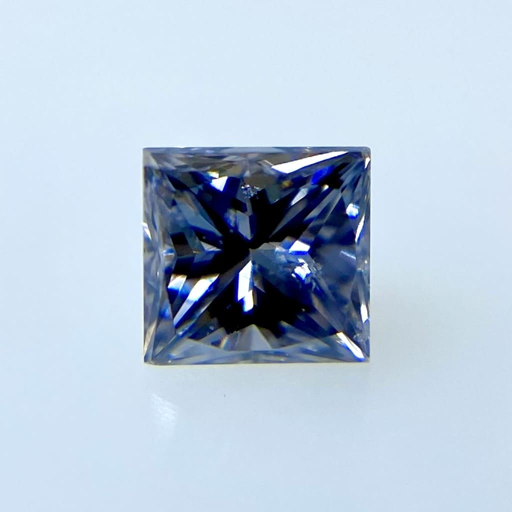 澄んだ夜空を想わせるとてもロマンチックなカラー上品な色合いで、心を落ち着かせるバイオレットダイヤモンドです。カラーダイヤの中でも希少価値が高く、その分値段も高いバイオレットダイヤモンド。天然物が少なく相場すら存在しないと言われるほど希少な宝石です。日本では、一緒にされてしまうことが多い「紫」という色。バイオレットダイヤモンドとパープルダイヤモンドは色の違いで言うと「パープルダイヤモンド」は「赤紫系」「バイオレットダイヤモンド」は「青紫系」の色になります。シェイプはスタイリッシュなスクエアカットです。スッキリっとしてとても美しくこのシェイプのカラーバランスが絶妙です。SIクラスでク透明なクリスタルがありますが美しさを損なうものであございません。