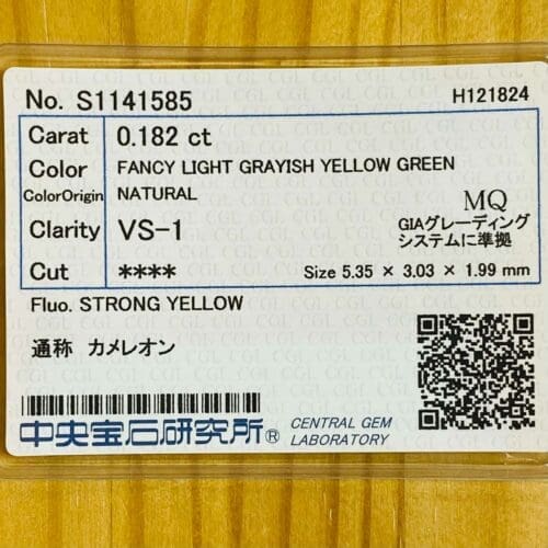 ダイヤモンドといえば「白!!」って答える方が大半かと思います。キラキラしていて婚約指輪の代名詞といわれるくらい女性が憧れる宝石ですよね。でも皆様はご存知でしょうか?少しいたずら好きなダイヤモンドが実は存在することを。。その名も「カメレオンダイヤモンド」カメレオンと聞くと、爬虫類で周りに合わせて色を変えていくあの生物を思い浮かべる方が多いかと思いますが今回は少しいたずら好きで神秘的な「カメレオンダイヤモンド」についてご紹介していきたいと思います。常温ではオリーブグリーンの色を持つカメレオンダイヤモンドですが加熱することでレモンイエローやオレンジイエローの色調に変化します。こちらは、一般的なカメレオンよりボディーカラーが明るく、テリがよいです。なかなかこのようなカメレオンは他ではない思います。こちらのカメレオンなんとストロングイエローに蛍光します。このダイヤモンドのパワーを引き出していると感じます。