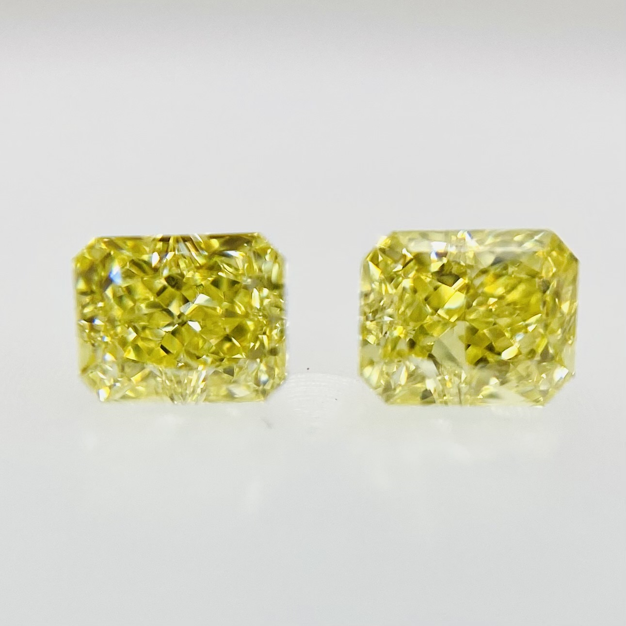 *こちらはセットでの販売です。躍動感ある発色の良いレモンカラーのような2粒が揃いました!ビタミンカラーでもあり元気をもらえる石であることは間違いないです!色味、形、大きさのどこをとっても、非常に似ております!カットは凛としたラディアントシェイプです。VS-VVSクラスで目立つインクルージョンはありません。テリも良く、綺麗なペア石です。