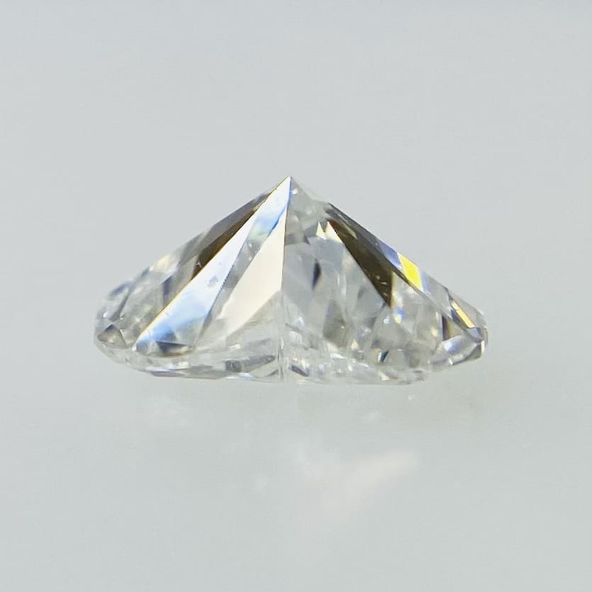 “とてもバランスの良いハートシェイプです。””ラウンド付近ブリリアントカットに飽きてしまった方や人と違ったものをお持ちになりたい方にもお勧めです。””カラーは最高のDカラーSIクラスでテーブルクリーンで綺麗な石です。”