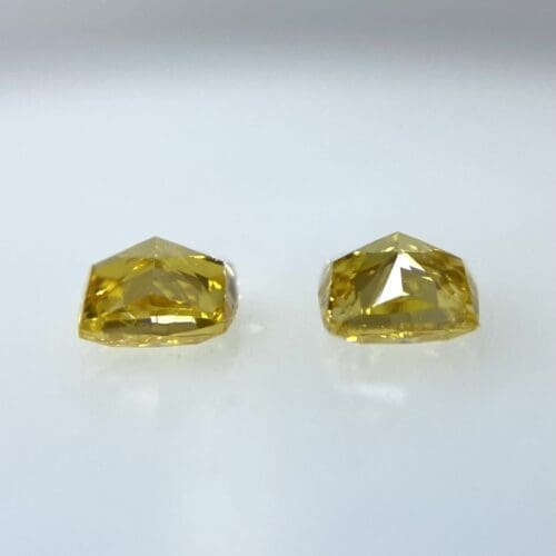 *こちらは2つセットでの販売です。大きさ、カット、色味、大変似ています。まさにペアに相応しいダイヤモンドです。色は明るいオレンジイエロー、テリもよく爽やかなカラー可愛いクッションカットです。VS、SI2と目立つインクルージョンもなく、綺麗です。