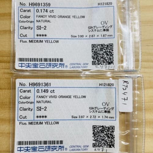 *こちらはセットでの販売です。素晴らしいVIVIDカラービタミンカラーでもあり元気をもらえる石であることは間違えないです!とてもバランスのよりオーバルカットです。SIグレードで小さなカーボンありますがボディーカラーが濃いため美しさを損なうものではありません。MEDIUM YELLOW の強い蛍光性がこの石の美しさを更に引き立てていると感じます。