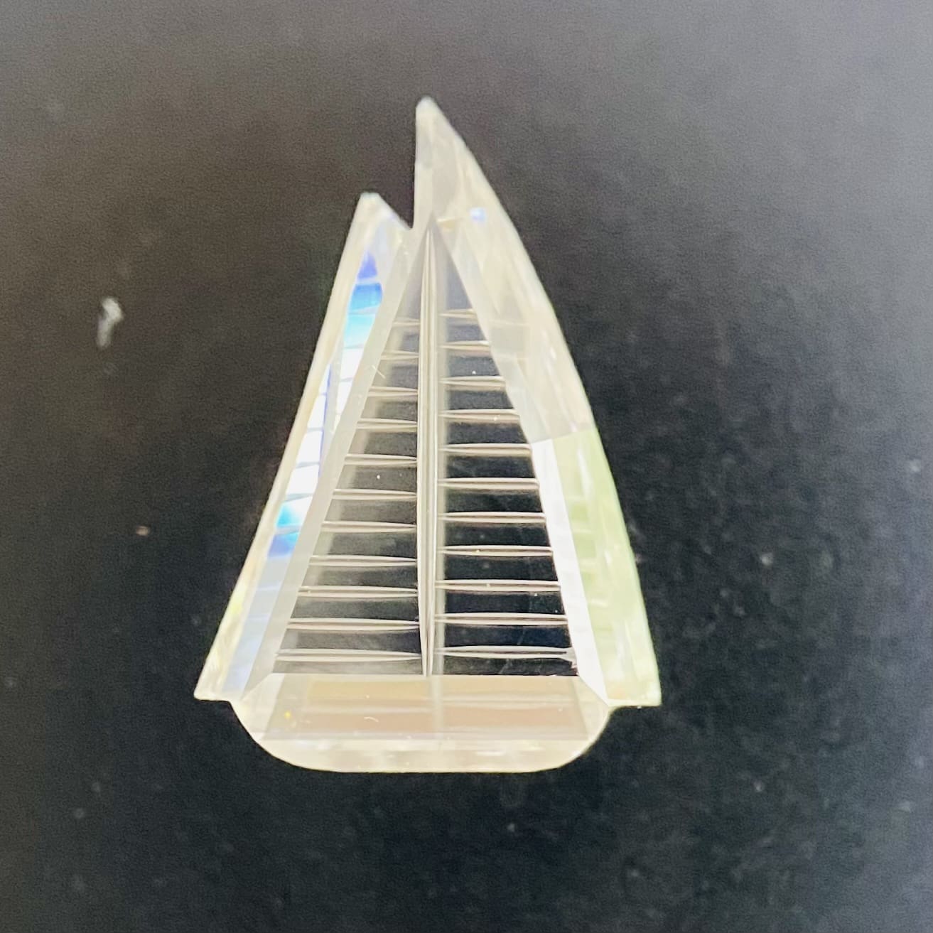 ヨット形にカットしてある、ダイヤモンドです。レーザーで繊細にカットされておりこれぞ世界に一つだけのシェイプと言っても過言ではありません。。とても、細かくカットしてあるので、躍動感があります。カラーもクラリティーもとてもよいです。他には絶対にない珍しいカットですので、気になった方は是非!お買い求めください!!!