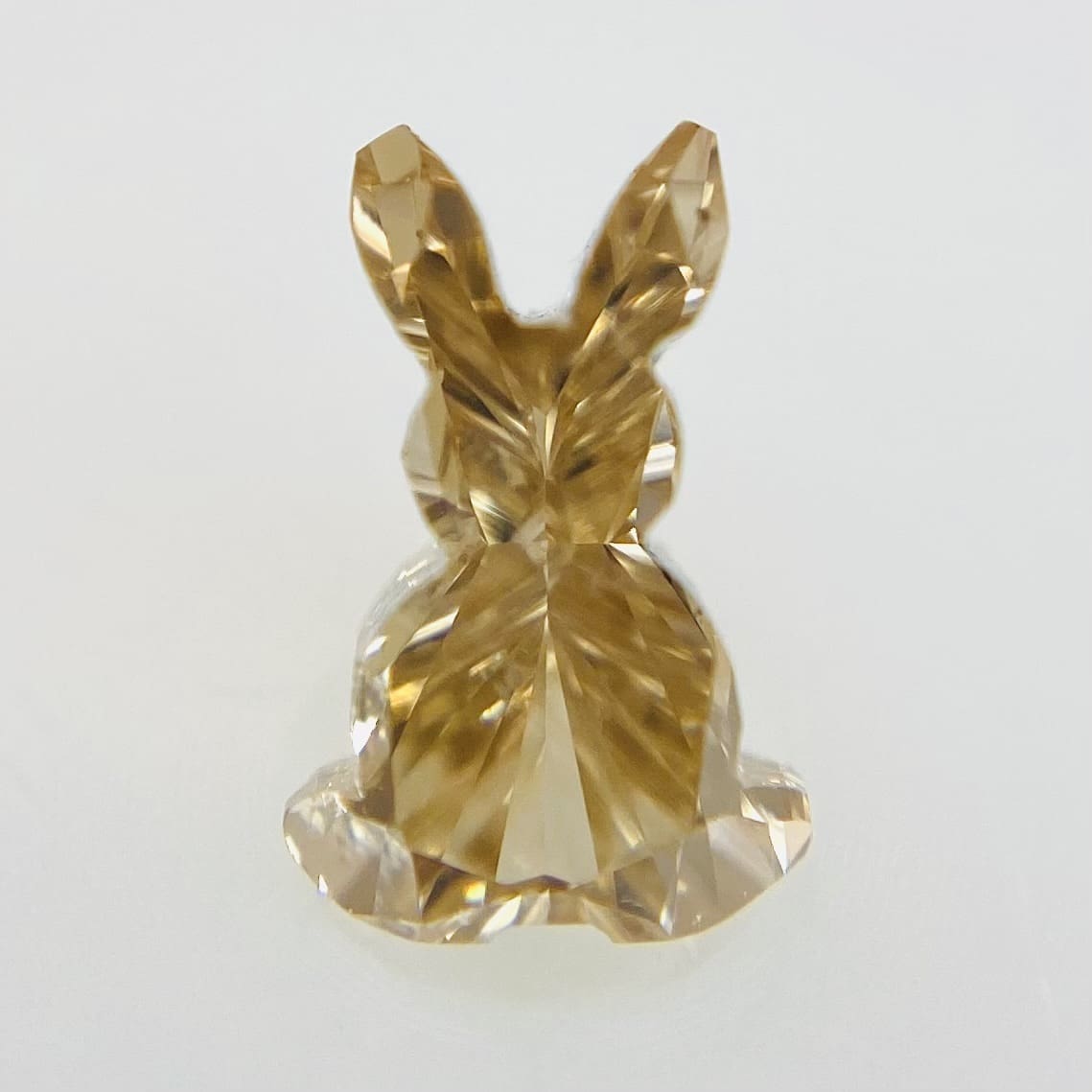 とってもかわいいうさぎさん型のダイヤモンドです。耳や立ち姿まで細かく鮮明に表現されています。優し気なBROWNカラーがよりうさぎさんのイメージにピッタリ合っています。躍動感もあり、今にも動き出しそうなほどです。お守りとしてお持ちいただいてもよろしいのではないでしょうか?他には絶対にない珍しいカットですので、気になった方は是非!お買い求めください!!!