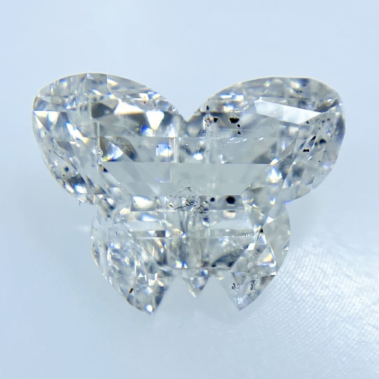 なんとあの美しい蝶々形のダイヤモンドです。とても、細かくカットしてあるので、躍動感があります。今にも空に飛び立ちそうです。神秘的で、テリがすごく良いです。Gカラー、SI2グレードでとても素晴らしいです。透明感があり、ジュエリーにしたら素敵なんだろうなぁって思います。他には絶対にない珍しいカットですので、気になった方は是非!お買い求めください!!!