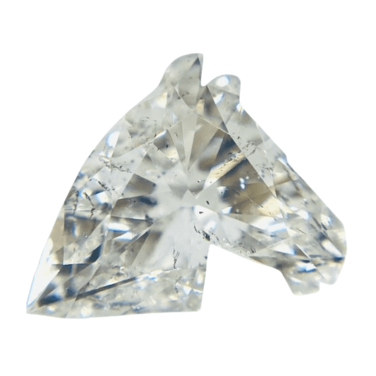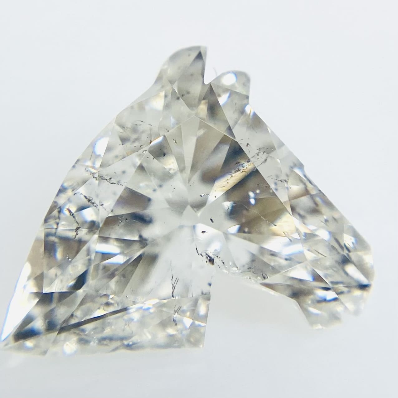 とてもカッコよいHorse headにカットしてある、ダイヤモンドです。カラーはGカラー、クラリティはSI2と素晴らしい結果が出ております。バランスがよく容姿端麗なお馬さんだと思います。とても、細かくカットしてあるので、躍動感があります。更にテリがよく、輝きは眩しいほどです。
