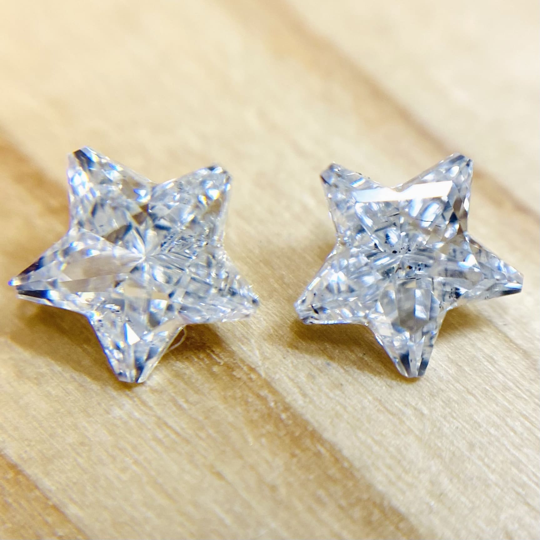 ※こちらは2つセットでの販売です。とてもキラキラ、お星様セット!私の大好きな 『きらきら星変奏曲』が流れてきそうです!キラキラ光る・・・・カットも細かく施されており、大変綺麗です。アレンジも色々できるダイヤモンドです。透明感があり、ジュエリーにしたら素敵なんだろうなぁって思います。小さなカーボンありますがキラキラで目立ちません。他には絶対にない珍しいカットですので、気になった方は是非!お買い求めください!!!